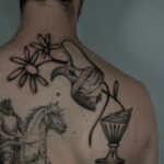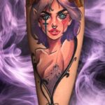 Alkonost Tattoo est une artiste tatoueuse dont l’univers se déploie entre néo-réalisme et néo-traditionnel. Son travail se distingue par un sens aigu du détail, des contrastes puissants et une approche picturale qui confère à chaque pièce une intensité narrative unique. Elle puise dans l’imaginaire symbolique et onirique — visages, animaux, créatures mystiques, fleurs — qu’elle transforme en compositions riches, mêlant précision réaliste et force graphique. Chaque tatouage signé Alkonost est une œuvre singulière, pensée comme une alliance entre émotion, esthétisme et profondeur symbolique.