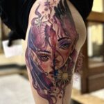 Alkonost Tattoo est une artiste tatoueuse dont l’univers se déploie entre néoréalisme et néotraditionnel. Son travail se distingue par un sens aigu du détail, des contrastes puissants et une approche picturale qui confère à chaque pièce une intensité narrative unique. Elle puise dans l’imaginaire symbolique et onirique — visages, animaux, créatures mystiques, fleurs — qu’elle transforme en compositions riches, mêlant précision réaliste et force graphique. Chaque tatouage signé Alkonost est une œuvre singulière, pensée comme une alliance entre émotion, esthétisme et profondeur symbolique.